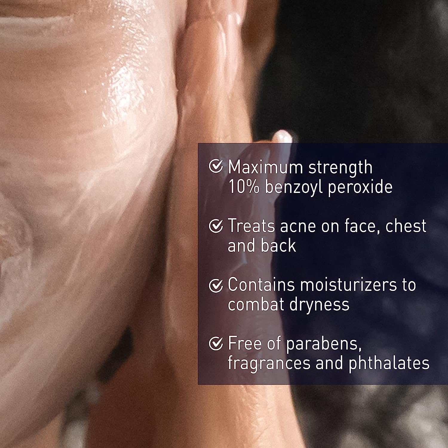 - Maximum strength formula contains 10% Benzoyl peroxide