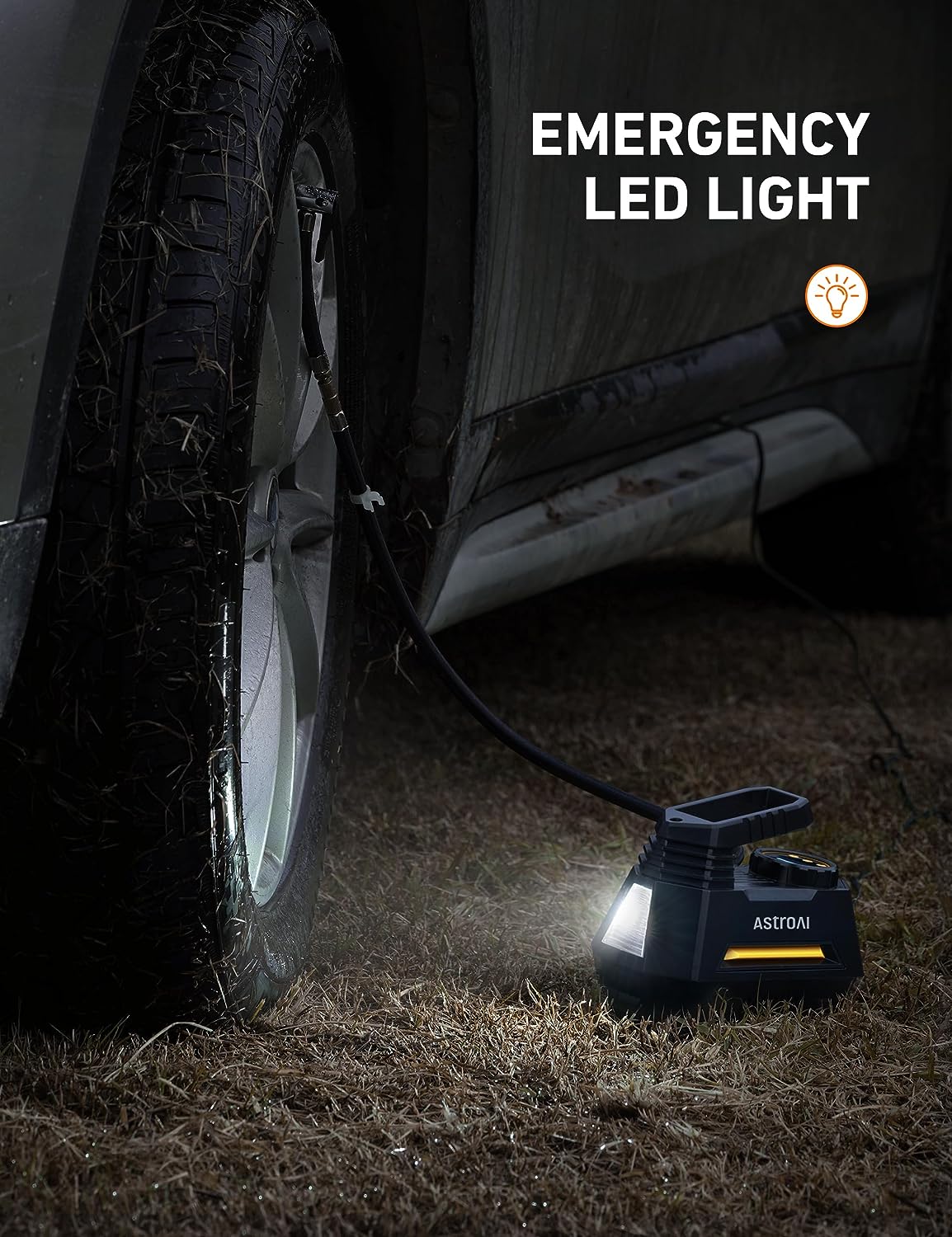- PRODUCT HIGHLIGHTS: One-click to change pressure units among PSI, kPa, BAR and KG/CM; Large white backlight LCD screen makes it easy to read even in the dark; Equipped with integrated LED flashlight with independent switch control for emergency use; 12V 120W 10ft (3.05 meters) long heavy-duty car cigarette lighter cord makes it convenient to use;NOT 110V AC plug. It needs a 10A or 15A converter to use in a wall plug.