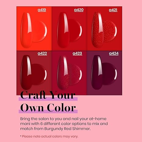 - Environmental & Healthy: The 6pcs burgandy red shimmer gel polish colors are made from 9 Toxin Free Ingredient which makes it safe and has low odor. No harsh ingredients or adhesives that lead to damaged nails.