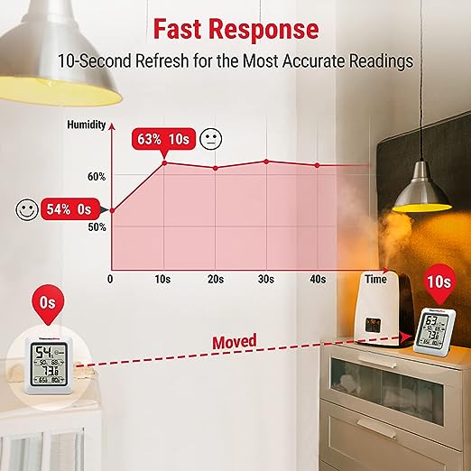 - Air Comfort Indicator: This humidity meter with humidity level icon indicates air conditions - DRY/COMFORT/WET, allowing this humidity sensor to ensure you’re always aware of changes to your home/household with just a quick glance